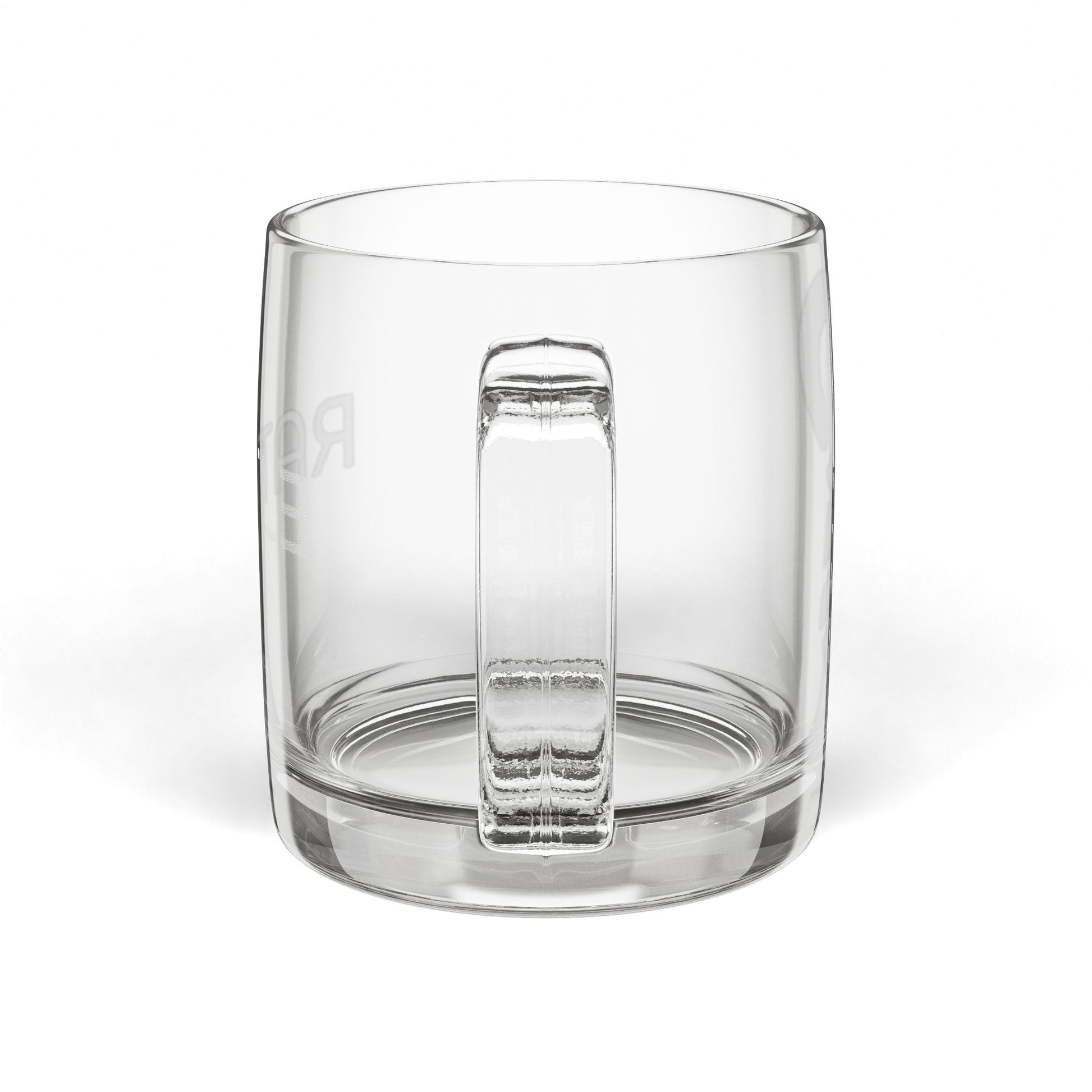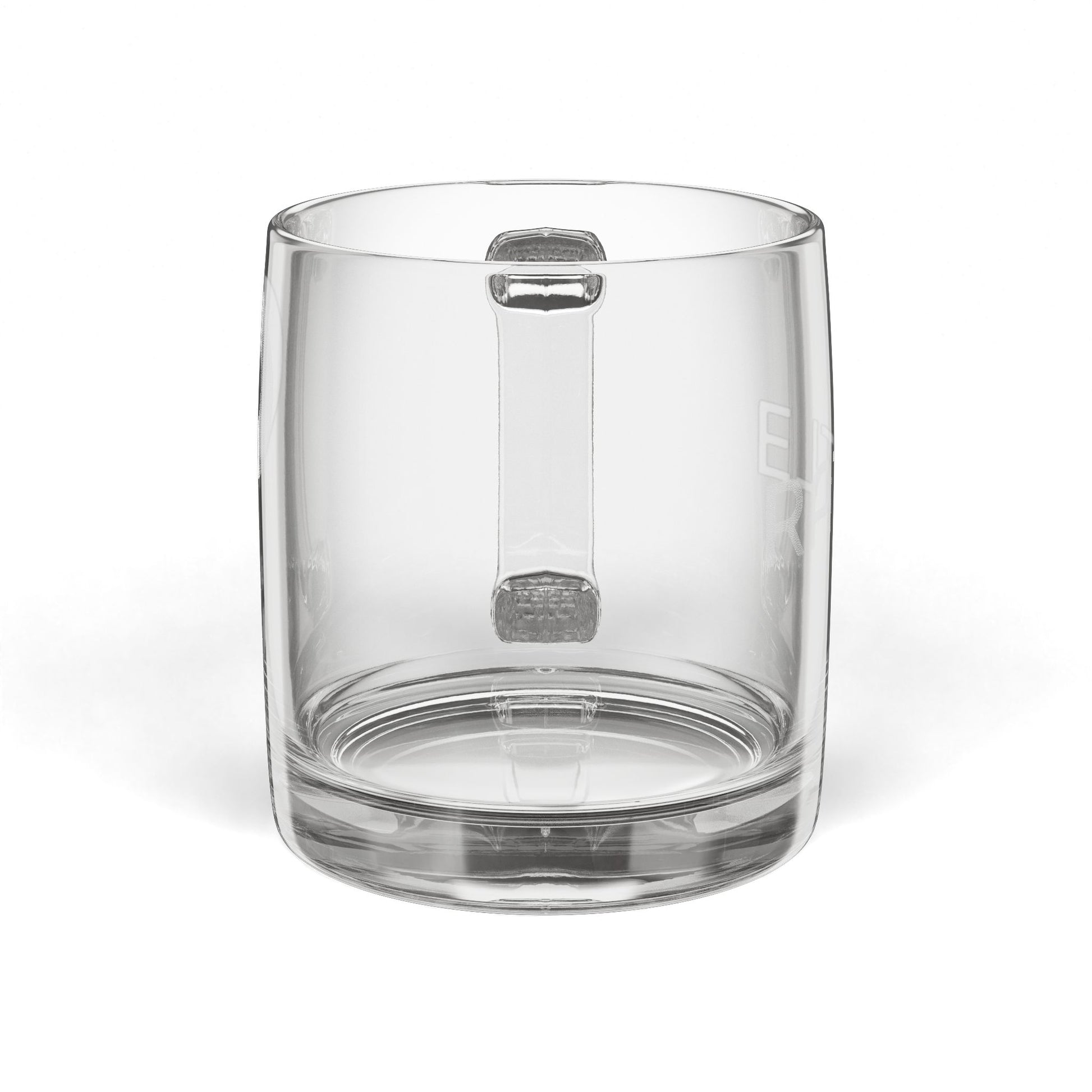 RATTL3 Engraved Glass Coffee Mug — 12.25oz Clear Cup, Subtle Etched Design