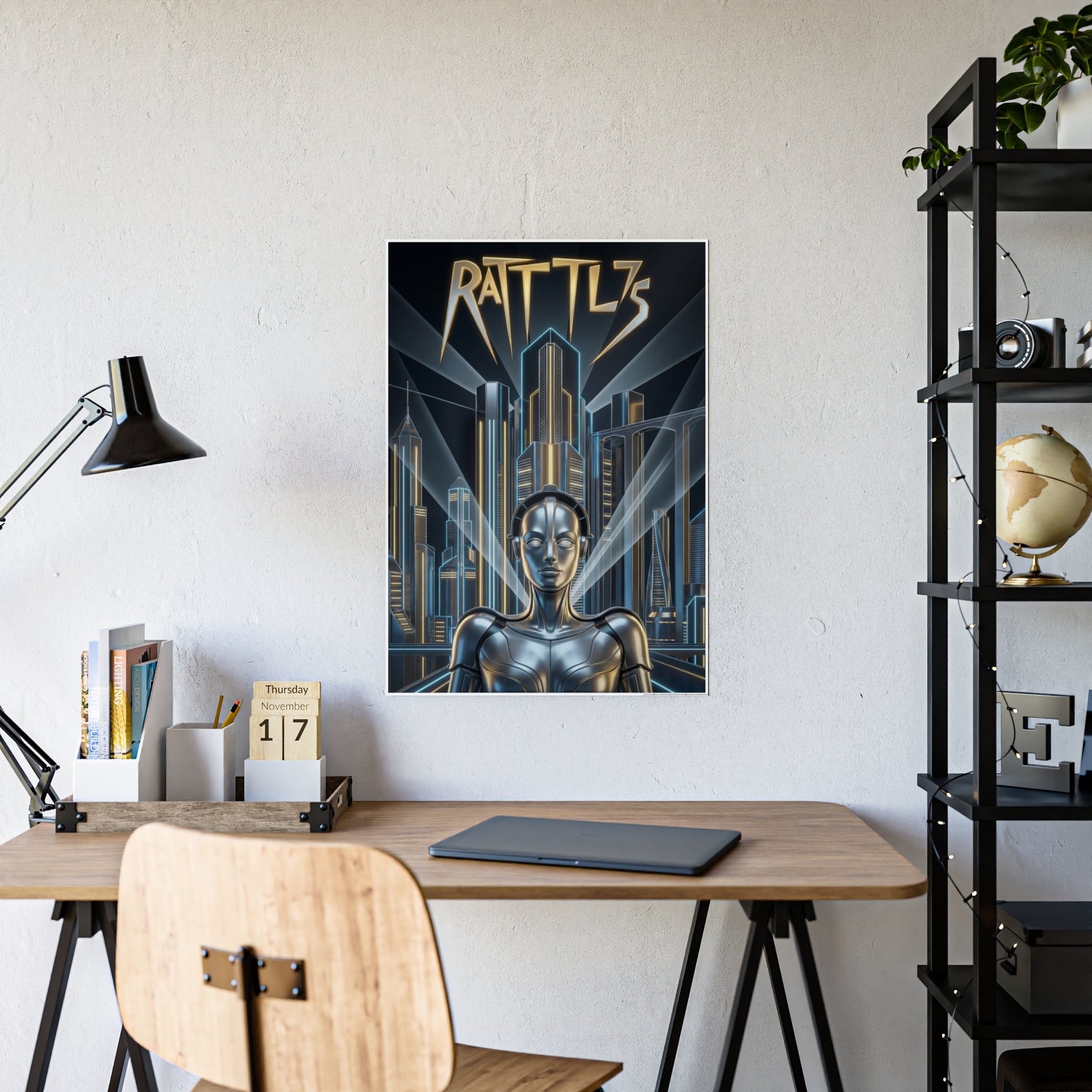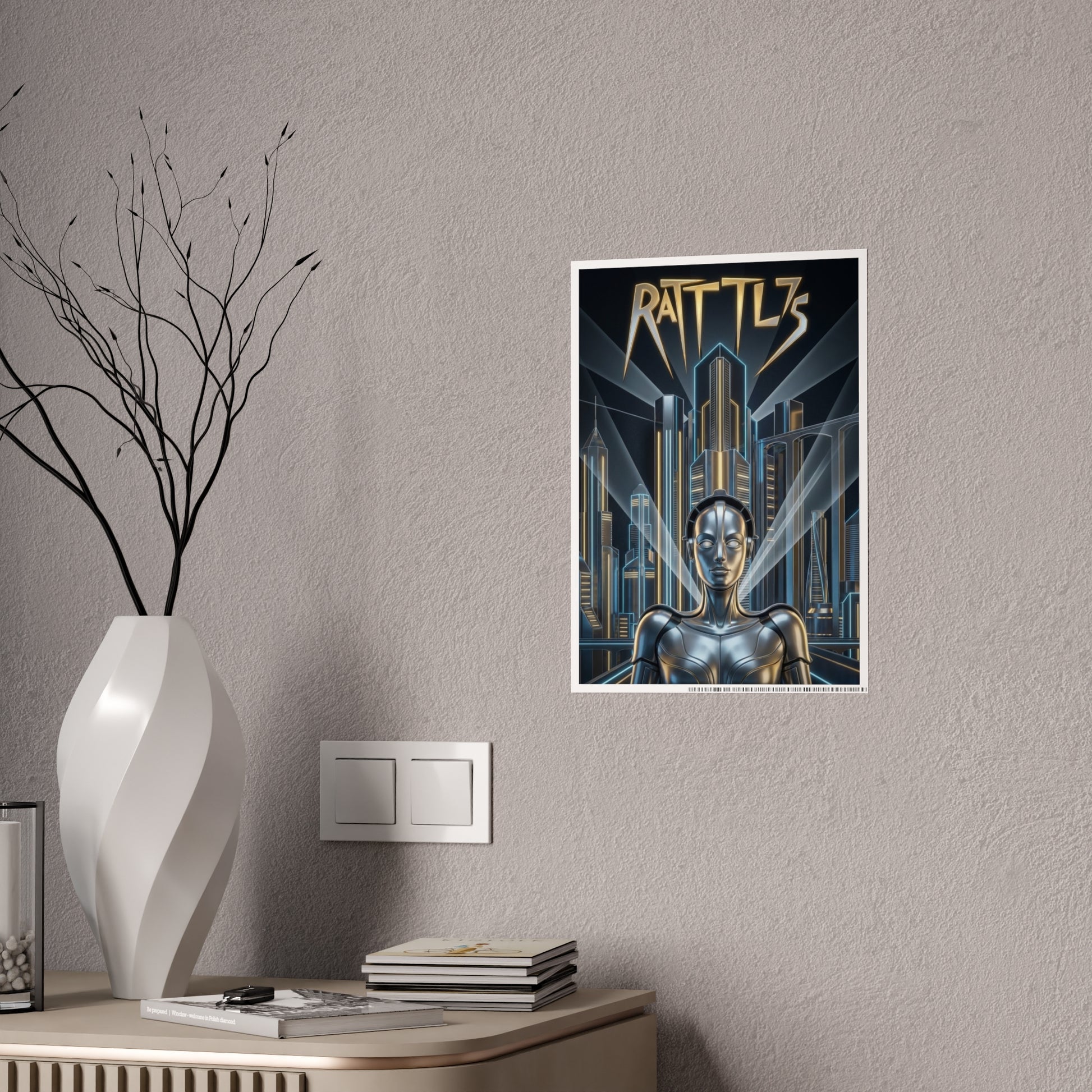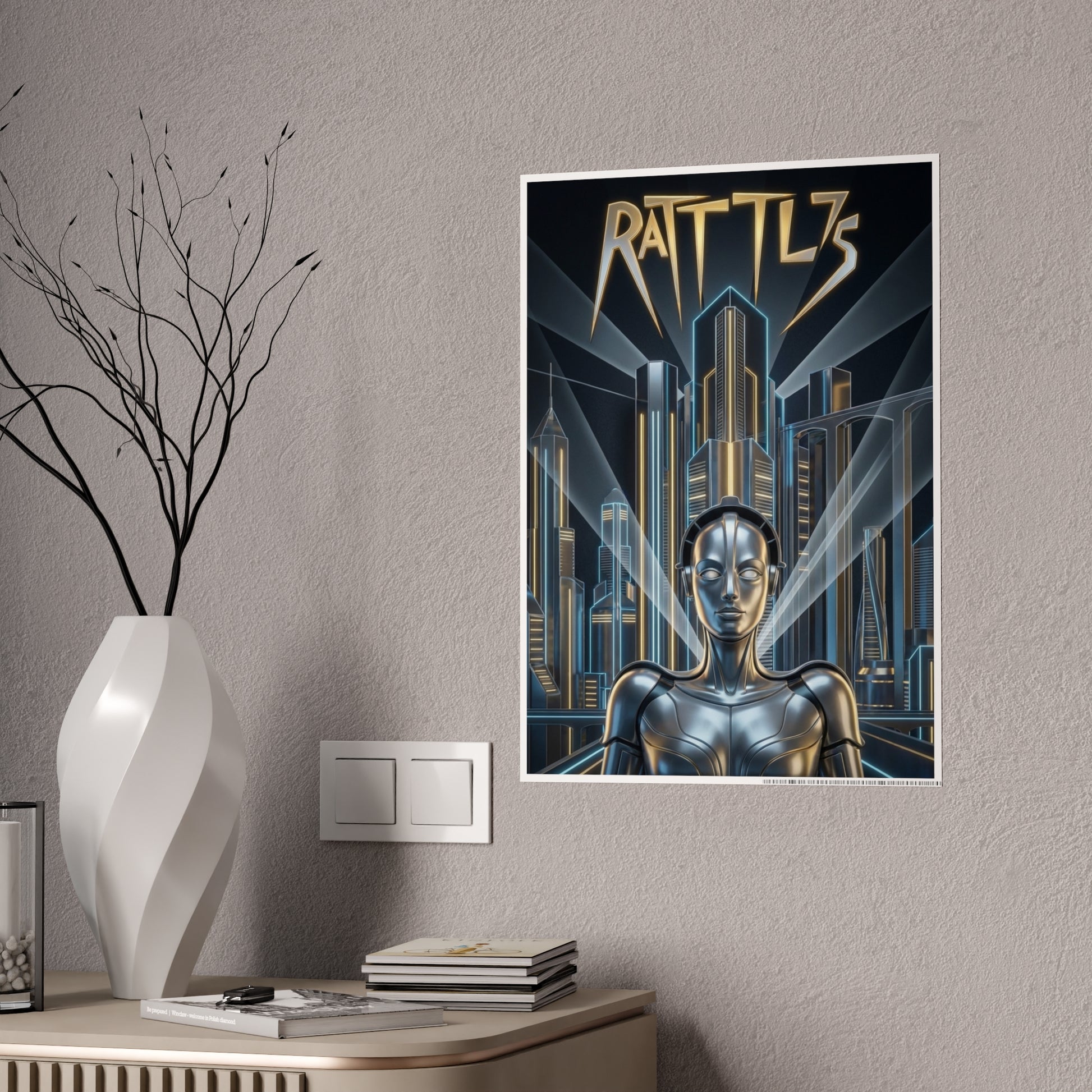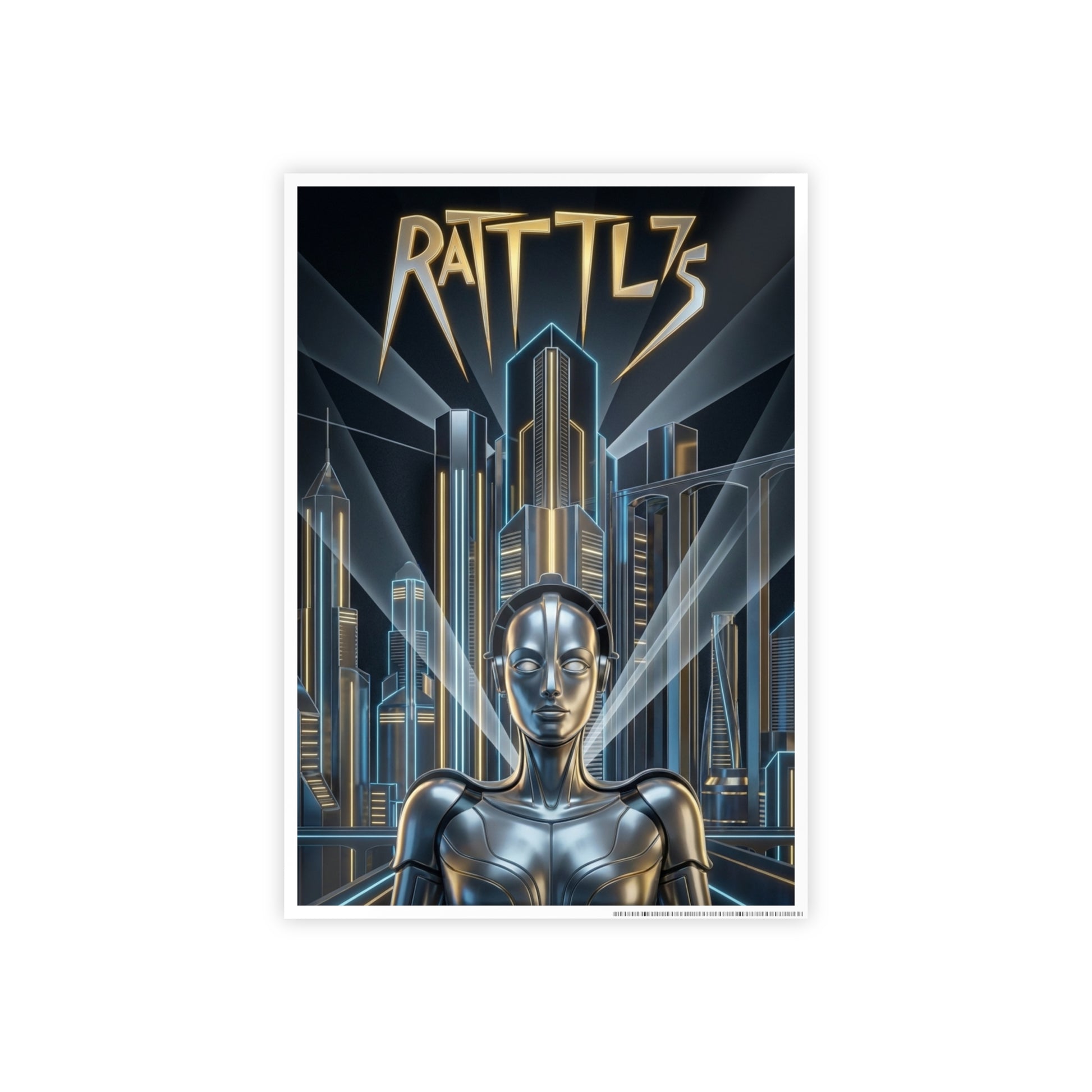 Rattl3 draws from classic Art Deco futurism—sleek lines, towering cities, and the promise of progress polished to a mirror shine. It reflects the belief that technology and ambition would save us, even as something quietly human gets left behind.